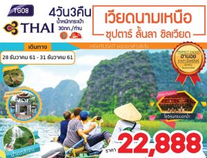 เที่ยวบินตรงไปกับเวียดนามแอร์ไลน์ เดินทางสู่เมืองฮาลอง ล่องเรือชมอ่าวฮาลอง พร้อมรับประทานอาหารบนเรือเสริฟพร้อมไวน์แดงดาลัด พักเมืองขุนเขาท่ามกลางธรรมชาติที่นิงห์บิงห์ ล่องเรือชมธรรมชาติ เมืองซาปา เมืองเล็กกลางหุบเขา ฉายาเมืองสวิตเซอร์แลนด์แห่งเวียดนาม นั่งรถไฟขึ้นสู่สถานีกระเช้าฟานซีปัน ชมกรุงฮานอย ถ่ายรูปด้านหน้ากับสุสานลุงโฮ ช้อปปิ้งถนน 36 สาย