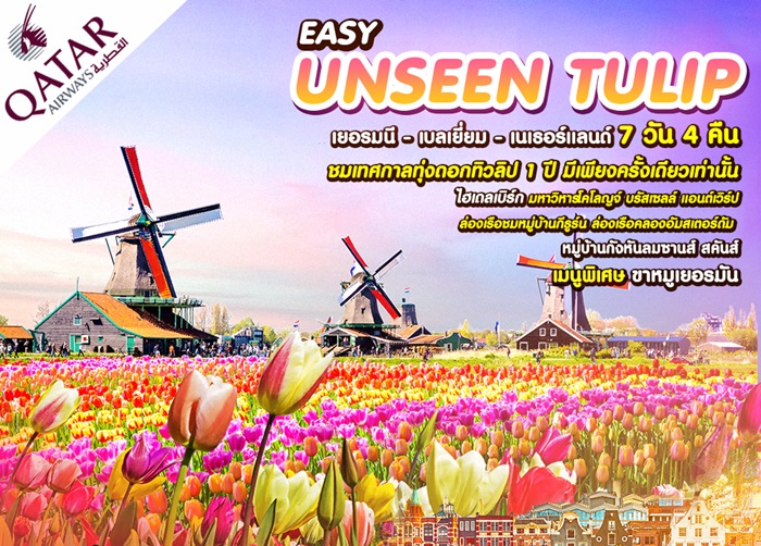 EASY UNSEEN TULIP เยอรมนี เบลเยี่ยม เนเธอร์แลนด์ 7 วัน 4 คืน บิน QATAR AIRWAYS (QR) พักโรงแรมระดับ 4 ดาว เทศกาลทุ่งดอกท…